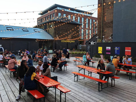Coachworks Ashford is a lively multi-use venue in Dover Place combining outdoor street food traders, bars, creative event spaces and a relaxed hang-out vibe right by Ashford International station. Dogs are welcome in the outdoor Yard area alongside you while you enjoy local beers, coffee, pizza, BBQ and other tasty bites from independent vendors – perfect for a casual meet-up or post-walk pit stop with your furry friend.